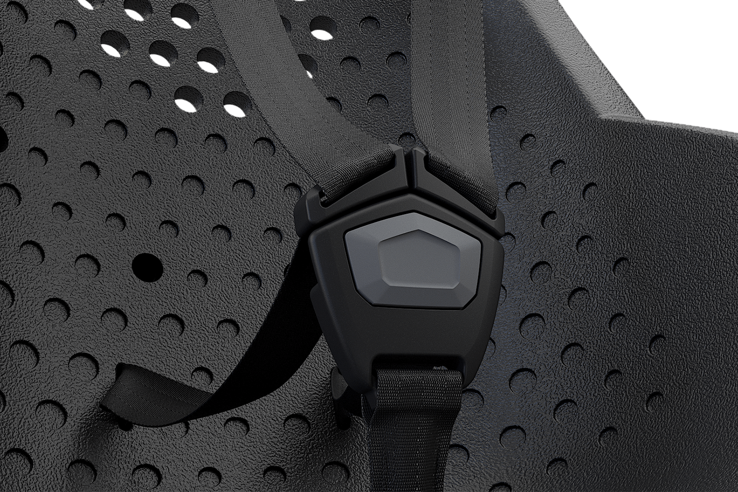 Justerbar, polstret 5-punktssele for sikker passform og maksimal komfort.