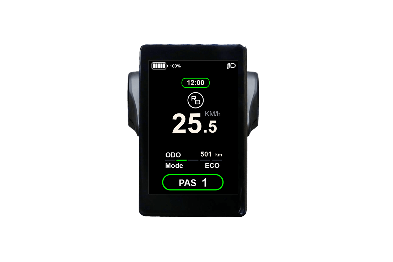 Displayen visar all viktig information som hastighet, batterinivå, körsträcka och effektläge – men har nu även inbyggd klocka och påminnelse för serviceintervaller, så du alltid vet när det är dags att ge din RAWBIKE lite extra kärlek.